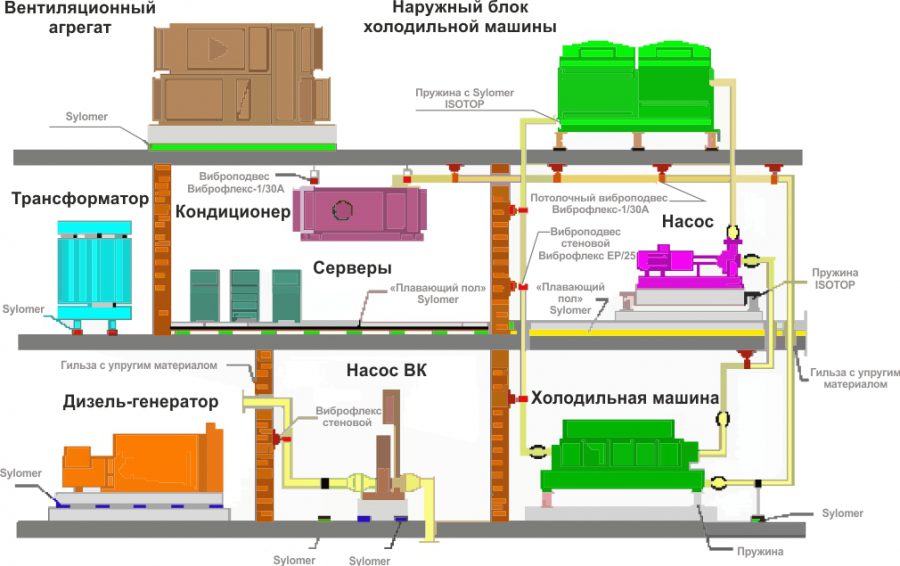 Для виброзащиты инженерного оборудования, машин и агрегатов применяют различные комбинации следующих методов: